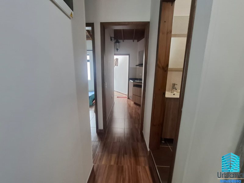 Este apartaestudio en un segundo piso, con habitacion independiente, Dos closets, uno de estos en la sala, zona de ropas, cocina integral, baño cabinado y enchapado, sala comedor, balcón, la otra habitacion es pequeña sirve para un estudio.
